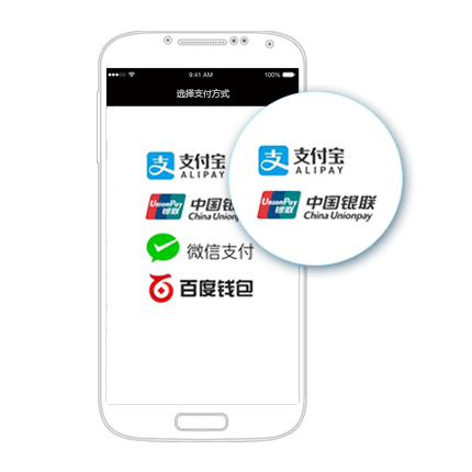支付,为iOS/Android原生/H5 App提供支付解决方案:支持微信支付、支付宝支付、银联手机支付、百度钱包等。